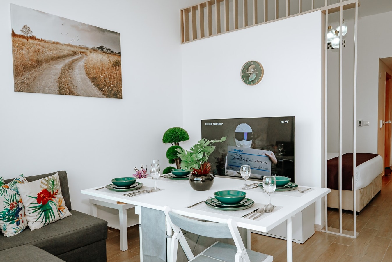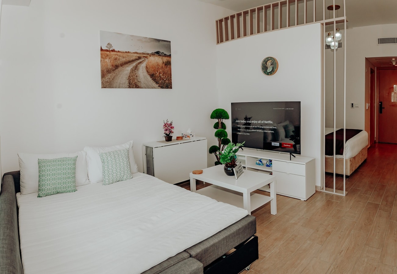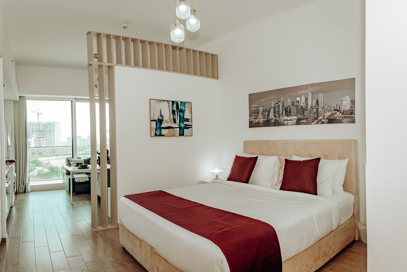 Nestled in the vibrant heart of Yas Island, our Mayan Junior 1 Bed Room Apartment combines luxury with affordability. This fully furnished Junior 1 Bed Room Apartment, complete with a king bed and sofa bed, meets five-star hotel standards for a comfortable, stylish stay. Enjoy high-speed internet, cable TV, and a full kitchen with a washing machine and fridge. Guests have exclusive access to a private beach, three pools, and a gym. A dedicated parking space, automated access, and 24/7 support