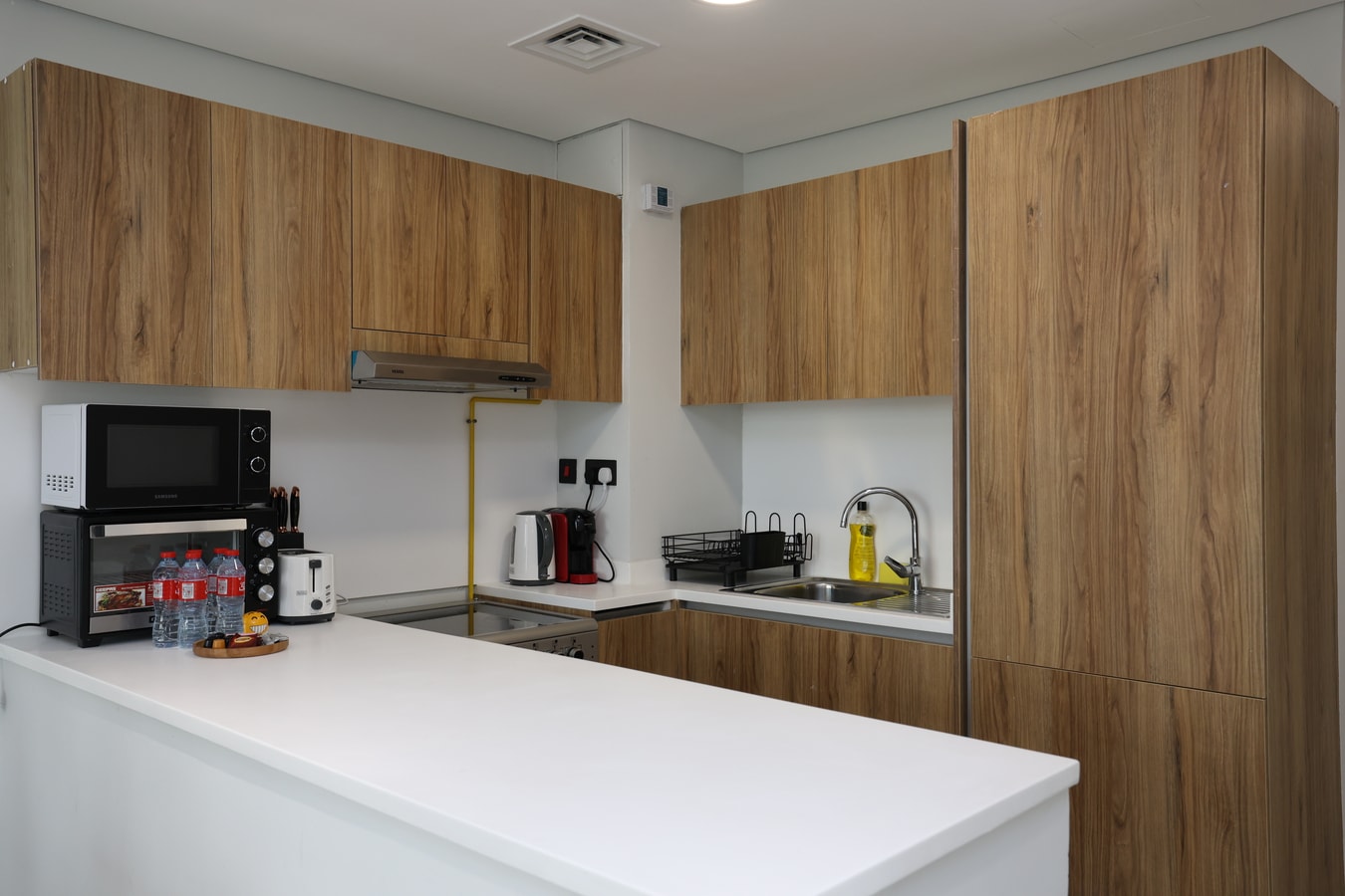 This is a fully furnished 3-bedroom apartment designed to provide comfort and practicality during your stay.