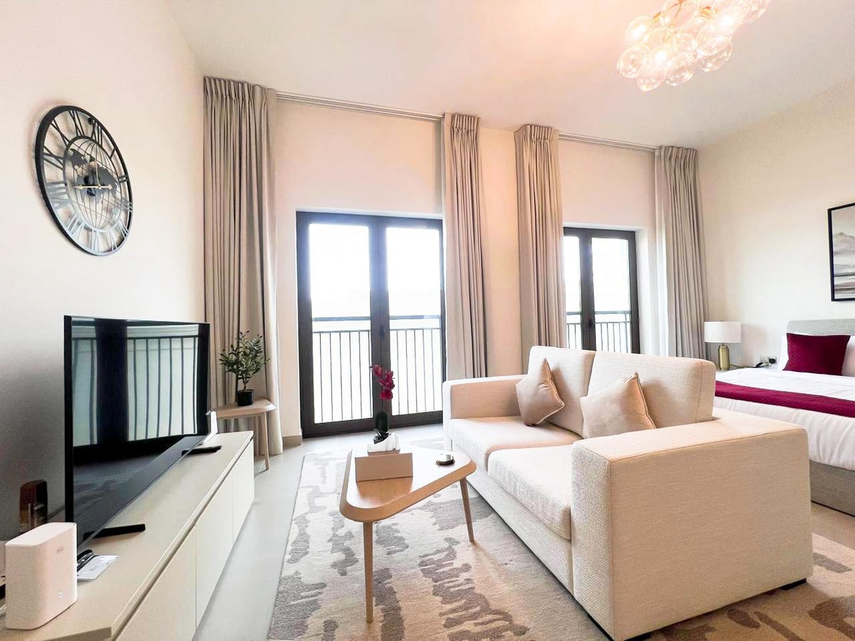 Welcome to your elegant studio retreat in Yas Island’s sought-after Yas Golf Collection. This stylish space offers a calm and comfortable stay just moments from Ferrari World, Yas Mall, and Yas Marina Circuit. Perfect for business, leisure, or a relaxing getaway, it features modern interiors, a fully equipped kitchen, premium linens, high-speed Wi-Fi, and smart TV.